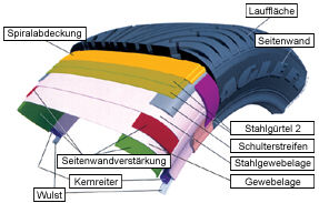 Fahrsicherheit und den Fahrkomfort Ihres Fahrzeuges. Das Schaubild unten zeigt Ihnen den Aufbau eines Reifens.